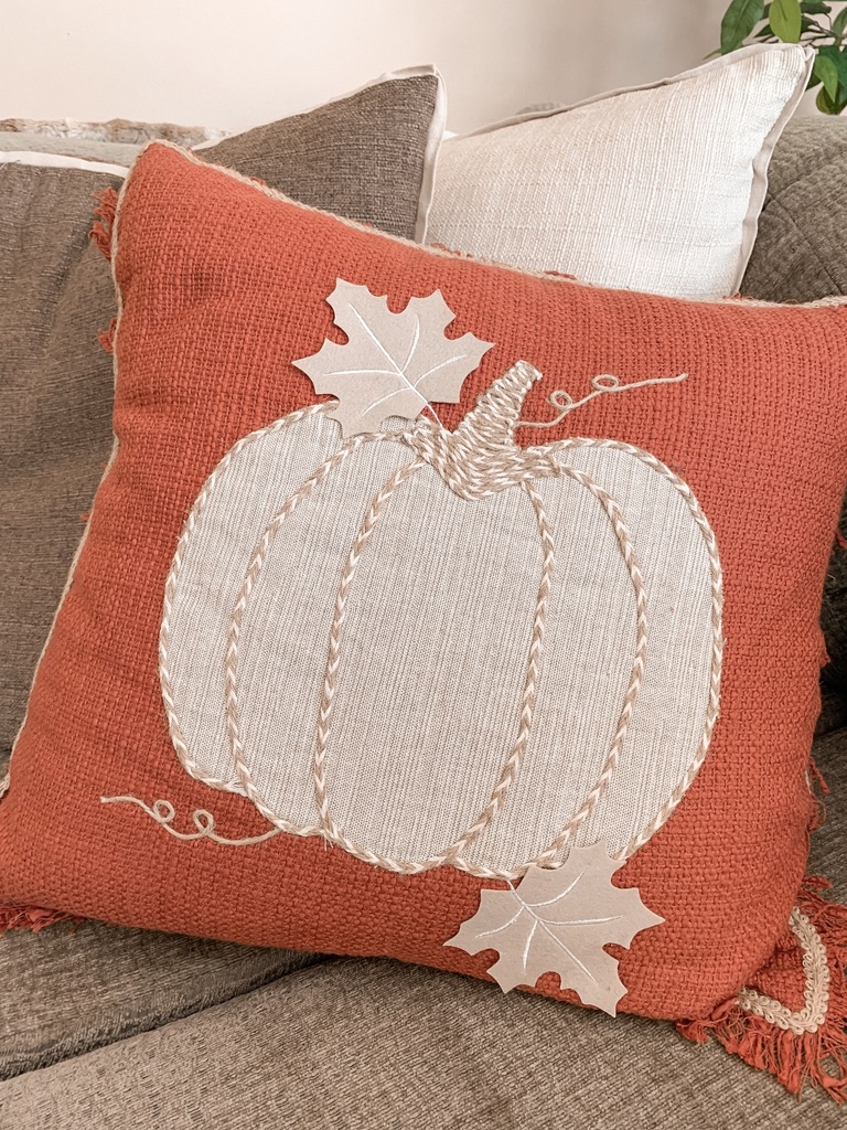 A quick, simple way to feel like you're ready for spooky season is by decorating your bedroom! It's a lot cheaper than trying to decorate your whole house, or if you live with roommates, it's an easy way to decorate without conflicting opinions. This year, I chose to decorate one shelf in my room with pumpkins, cute Fall sayings, and leaves! Adding one seasonal throw pillow is also a great way to easily switch up your normal decor without breaking your budget.